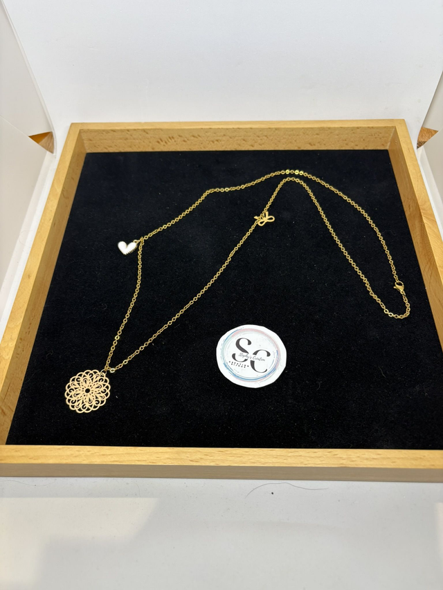 Un bijou élégant et mystérieux, inspiré des astres et des éléments naturels. Ce collier fait main marie avec finesse des breloques dorées et des touches turquoise pour un look à la fois bohème et chic.